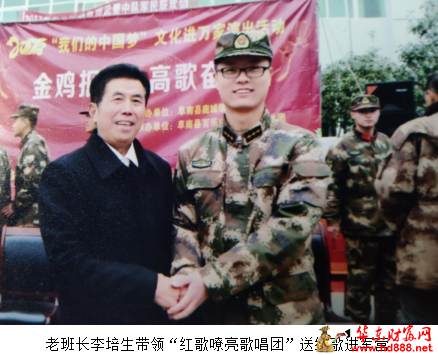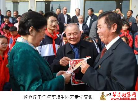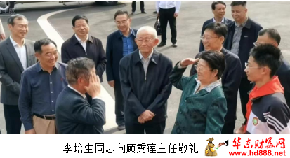 作为阜南县关工委常委,李培生的目光始终聚焦在青少年身上。他坚信,歌声是走进孩子心灵最近的路径。一次在王家坝中心学校的调研,让他忧心忡忡。许多学生精神不振,学习状态不佳,他发现是网络游戏侵蚀了孩子们的精神世界。“决不能这样下去!”李培生心急如焚,主动向学校请缨,担任校外辅导员。在他的积极推动和学校的大力支持下,一场以红歌为主题的校园文化振兴活动拉开了序幕。学校建起了红色文化园,开展了“红歌唱响校园”系列活动:红歌比赛、歌曲创作赛、评选“红歌小歌星”、红歌故事会……沉寂的校园瞬间被激昂的旋律点燃。李培生还亲自创作了《王家坝之歌》和《王家坝精神我接力》等校园励志歌曲,将“舍小家、为大家”的王家坝精神融入歌词,用乡音乡情激发孩子们的共鸣。歌声中,孩子们的眼神亮了,腰杆直了,学习的劲头也足了。一位老师感慨道:“李老的歌,比我们苦口婆心的说教管用多了!”这一成功的红色教育模式迅速在全县复制推广,王家坝中心学校也成为县域红色研学的打卡地。2023年,中国关工委第56个“中国关心下一代工作教育基地”在这里挂牌。中国关工委主任顾秀莲亲临现场,在与李培生交流时,她称赞道:“你做的好啊!向你学习!”两位老人相互举手敬礼的画面,定格成永恒的瞬间。