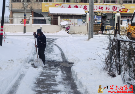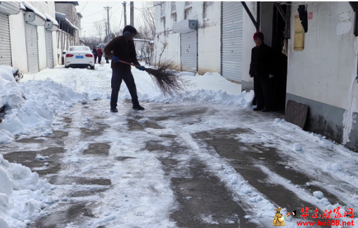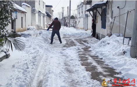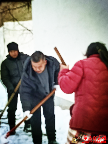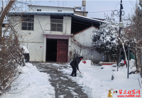 1月20日一大早,天刚蒙蒙亮,余庄村委会主任王朋飞便已经忙碌起来。他迅速协调安排了一台推土机,轰鸣声打破了村庄的宁静,开始对村内主干道上尺把厚的积雪进行清理,为全村的交通主动脉“解冻”。与此同时,王朋飞亲自带领村里的工作人员,组成了一支特殊的扫雪队伍,他们没有片刻的迟疑,便冒着凛冽的寒风,踏上了为特殊群体排忧解难的征程。