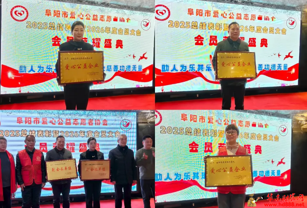 大会的核心环节是表彰先进。为树立榜样、激励更多人投身公益,协会经过严格评选,对在过去一年中表现突出的集体和个人进行了表彰。其中,阜阳市众鑫商品混凝土责任有限公司、安徽安舒居养老服务公司、阜阳市清香阁陵园、安徽省虹美舞蹈学校荣获“慈善公益楷模单位”称号;安徽金阳生物科技有限公司、古井集团阜阳办事处、阜阳颍河西路惠耳听力助听器被授予“爱心单位”荣誉。此外,还有27名个人获评“慈善公益楷模”,83名志愿者当选“优秀志愿者”,10名青少年荣获“优秀好少年”称号。当获奖代表依次登台领奖时,台下响起阵阵热烈掌声,这掌声既是对优秀者的致敬,也是对所有志愿者默默付出的肯定。
