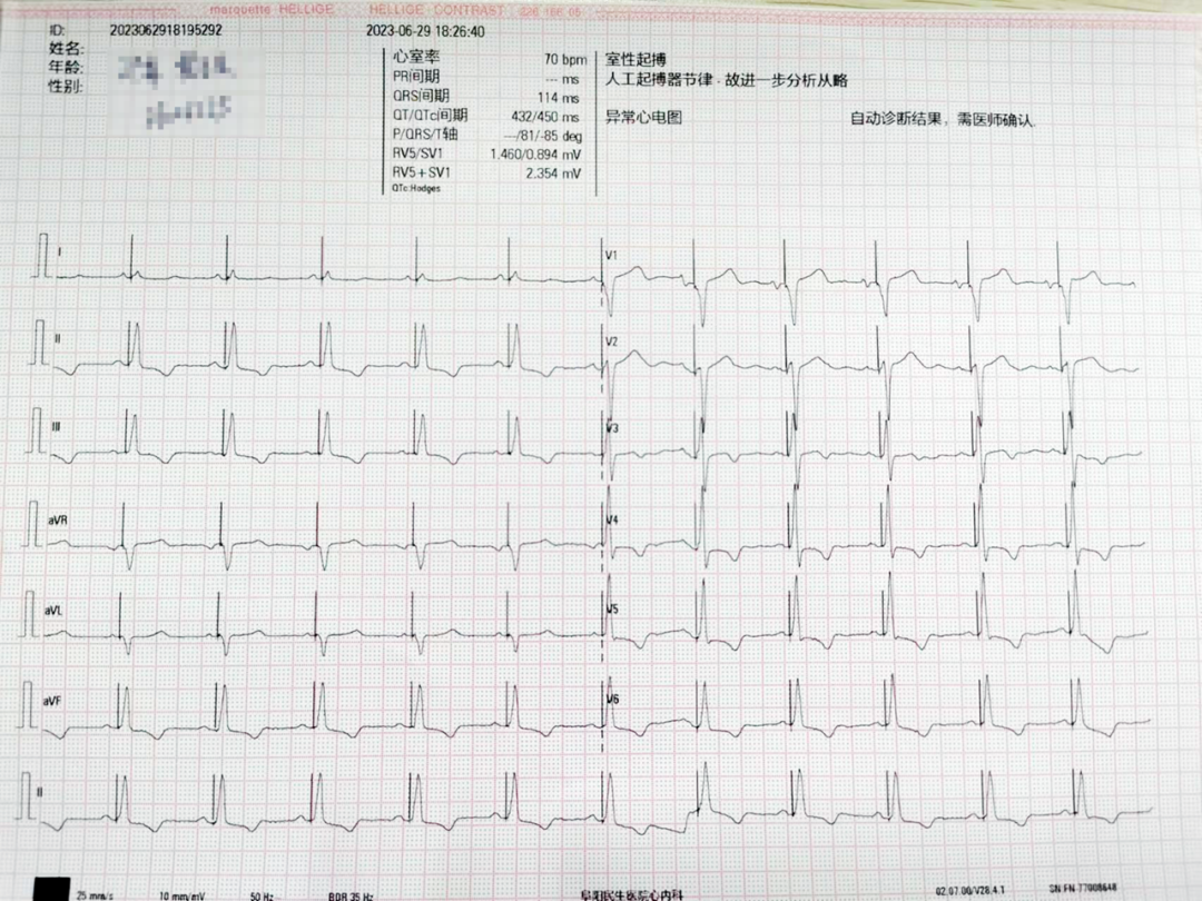图示:术后心电图胡福莉介绍说,既往常规起搏器治疗是把电极与右侧心房、心室肌肉连接,刺激带动心脏跳动。对于房室阻滞的患者,心室起搏依赖,长时间右心室起搏会引起心室收缩不同步,很容易引起心衰房颤等。传导束(希氏束或左右束支)起搏技术是目前最先进和推荐的生理性起搏技术,其关键环节是把心室电极与传导束相连。靶点从大片的心肌变成传导束,手术难度、对术者的综合要求大幅度提高,但对病人好处很多,例如这种起搏基本没有改变心室激动顺序,是最生理的起搏技术,和正常人自身传导顺序一样。同时电极深拧,不容易脱位,左束支、左侧心内膜、右侧心内膜三重起搏选择,双重自身心室起搏备份,大大降低了未来电极阈值升高废用风险。