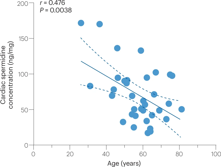 图 3 人类心脏亚精胺水平随年龄下降的情况